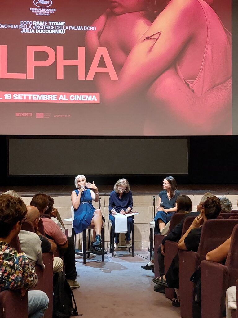 Ducournau costruisce un impianto filmico potente, forse discontinuo ma che lascia il segno. La regista, classe 1983, ha ricordato (in un affidabile italiano) che Alpha è il suo film “più personale e profondo” e che “non è una commedia ma nemmeno un Titane 2”