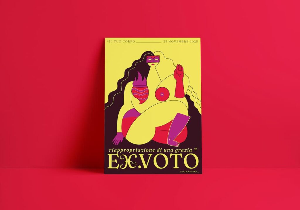 Rileggere il patrimonio etrusco attraverso un filtro contemporaneo per poterlo comunicare a un nuovo pubblico è l’obiettivo di questo itinerario ma Luchadora ci ha spiegato di aver sviluppato l’interesse per questa cultura molto tempo fa «spinta dalla curiosità e dal piacere personale». Attraverso un vero e proprio gran tour nei siti archeologici della Toscana, ha osservato quanto fosse rilevante la figura della donna in quel contesto e come gli Etruschi offrissero una rappresentazione femminile straordinariamente avanzata e complessa. Le illustrazioni di Luchadora ricuciono frammenti di un immaginario antico, restituendo alle icone una compostezza capace ancora oggi di trasmettere forza, libertà e autodeterminazione. Non a caso il poster dedicato al 25 novembre ruota intorno al tema degli ex voto anatomici: «Ho voluto cambiare prospettiva, non più quella della gratitudine per il dono ricevuto, ma della riappropriazione della grazia del proprio corpo. Tenere insieme i pezzi per gridare: il corpo è mio! ».