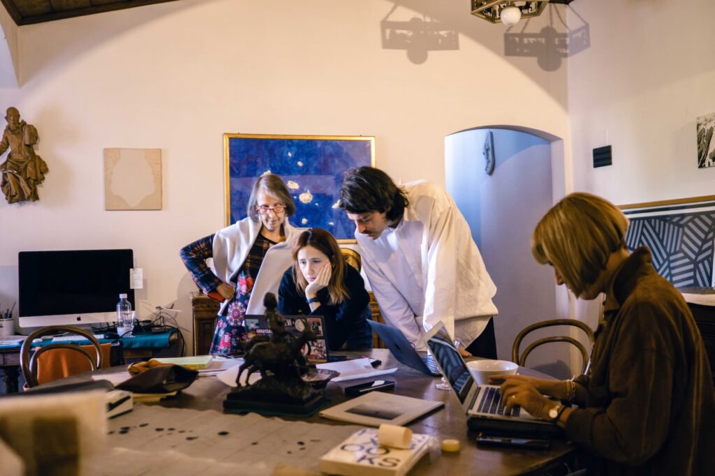 Oltre la granitica concezione dell’archivio come luogo chiuso in se stesso, di difficile accessibilità e di rara comprensione nei suoi meccanismi, TAB e Zita Marescalchi propongono una visione allineata con la curiosità e le esigenze di una comunità variegata, dove l’archivio, come entità, sia un mondo da esplorare. Come spiega Barbara Cinelli, gli archivi «sono il luogo di quello che vogliamo conservare, far vivere, ma anche riaprire e ricontestualizzare. Un archivio come quello di Andrea Bobo Marescalchi è un mondo che ancora ci parla». Il progetto di residenza si è sviluppato in seguito a una serie di eventi e progettualità con cui TAB ha sentito di doversi confrontare. «Nel caso specifico dell’archivio Marescalchi – continua Cinelli – ci è sembrato che questo personaggio, questo signore, questo artista che diceva di sé “io faccio il pittore, non faccio l’artista” avesse molti contatti con il mondo di oggi. La generosità di Serena Bencini e Zita Marescalchi ci ha consentito di conoscere dall’interno questo mondo: noi non abbiamo visto solo le opere, abbiamo aperto taccuini e visto fotografie.» L’archivio, infatti, per Zita Marescalchi, ha bisogno di tempo e cura per essere compreso nella sua complessità. La produzione di Bobo è «declinabile e leggibile attraverso altre discipline: è proprio il suo lavoro che è predisposto in questo modo». La multidisciplinarietà è fondamentale anche per TAB che per la prima volta decide di cambiare approccio, come spiega Azzurra Gasparo: «abbiamo deciso di cambiare il modus operandi: non abbiamo fatto nessuna call perché le quattro figure insieme all’artista siamo noi: curatrice, storica dell’arte, grafica, video maker; ci siamo messe in gioco e da ruolo di supervisor siamo passate a persone in residenza.»