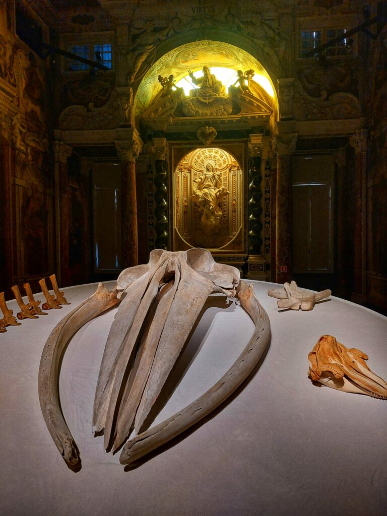 All’interno delle sale di Palazzo Ducale, tra installazioni video, sculture, arpioni, tele, fotografie e incisioni, il mito della balena si intreccia con la storia della navigazione — un tema perfettamente inserito nella superba cornice genovese, crocevia di rotte e storie marine.