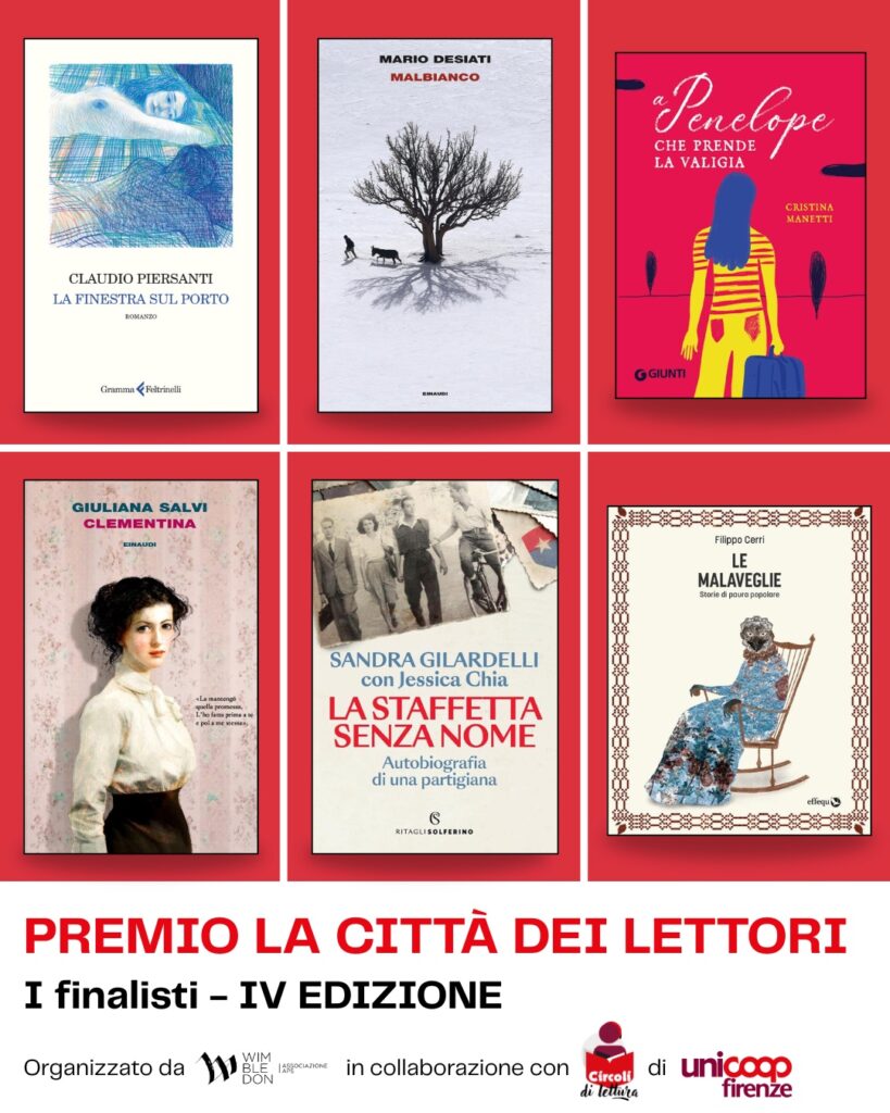 Filippo Cerri, Jessica Chia, Mario Desiati, Cristina Manetti, Claudio Piersanti e Giuliana Salvi sono i protagonisti della quarta edizione del Premio La città dei Lettori, il riconoscimento ideato da Wimbledon APS in collaborazione con i Circoli di Lettura di Unicoop Firenze.