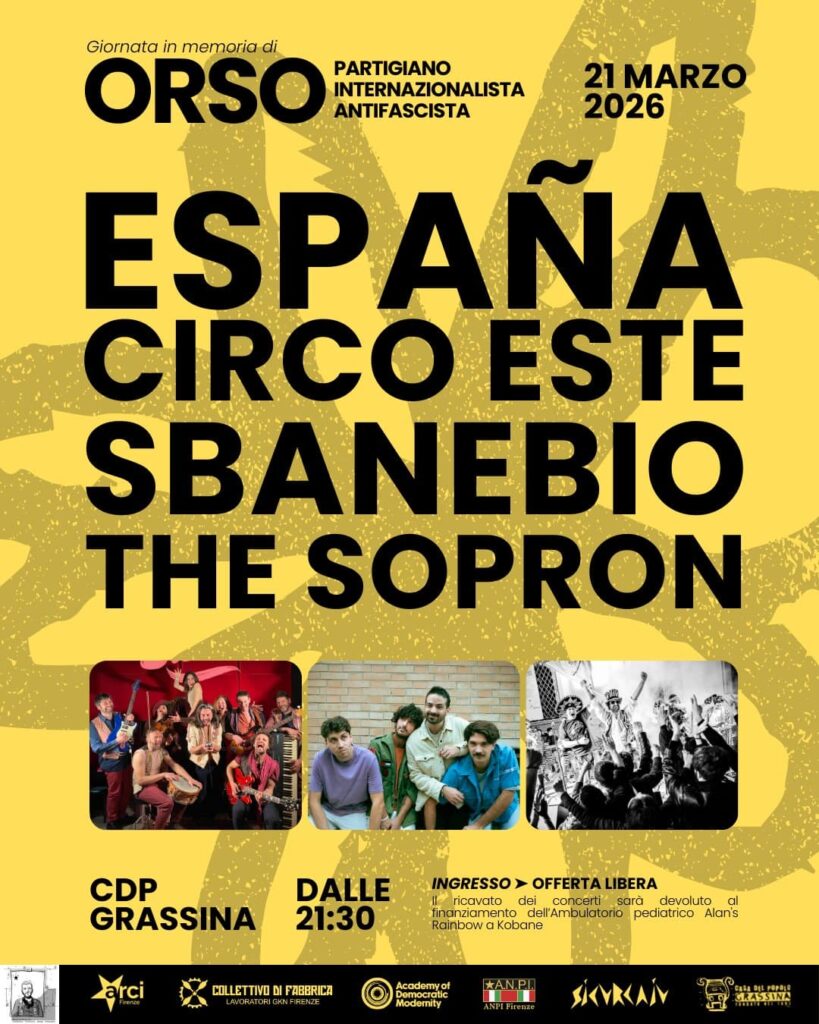 Il live degli España Circo Este farà parte delle iniziative dedicate a Lorenzo “Orso“ Orsetti, partigiano di Rifredi ucciso il 18 marzo 2019 mentre combatteva contro l’ISIS nelle Brigate Internazionali in difesa della rivoluzione del Rojava.